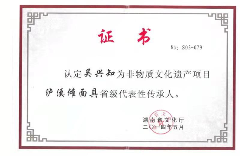 吴兴知,苗族,1963年9月出生,湖南省泸溪县兴隆场镇人。傩面具雕刻第三代传人,湖南省非物质文化遗产项目泸溪傩面具代表性传承人,湘西州工艺美术大师、湘西州工艺美术协会会员。